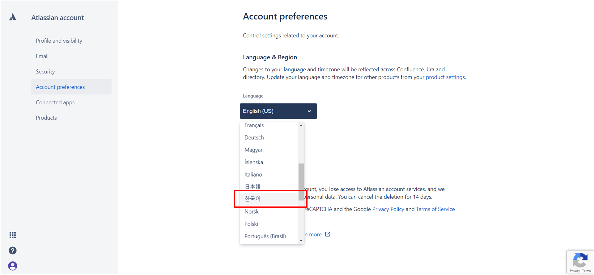 Language에 Account Prefernces를 클릭해주세요